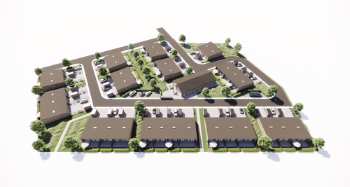 I Brørup, Vejen Kommune, bygger ALFABO 31 boliger og ét fælleshus med gæsteboliger i vores nye afdeling og boligområde Landbohaven.